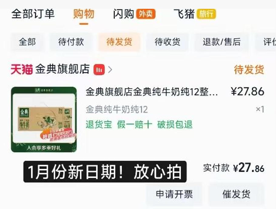 实发1月份新日期!金典 纯牛奶 250ml*12盒 到手27.8